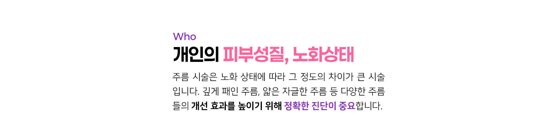 시술 후 부기와 멍은 남이 모를 정도이며, 개인의 피부 타입의 따라 7~10일 이후 회복됩니다. 시술 시간은 보통 30분~40분 정도로 진행되며, 병행시술 유무에 따라 더 소요될 수 있습니다. 일상생활 복귀는 시술 후 바로 가능합니다.