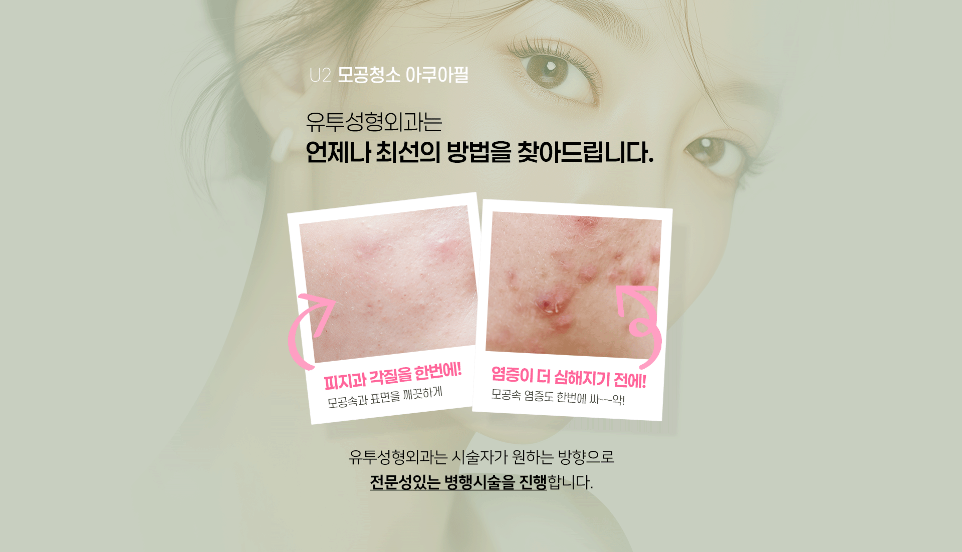 유투성형외과에서는 원하시는 효과를 극대화 시킬 수 있는 최적의 방법을 찾아드리며, 특히 1:1맞춤 병행시술은 많은 분들이 높은 만족도를 평가하십니다. 충분한 고민을 하실 수 있도록 도와드리므로 지금 내원하셔서 상담을 받아 보시기 바랍니다.