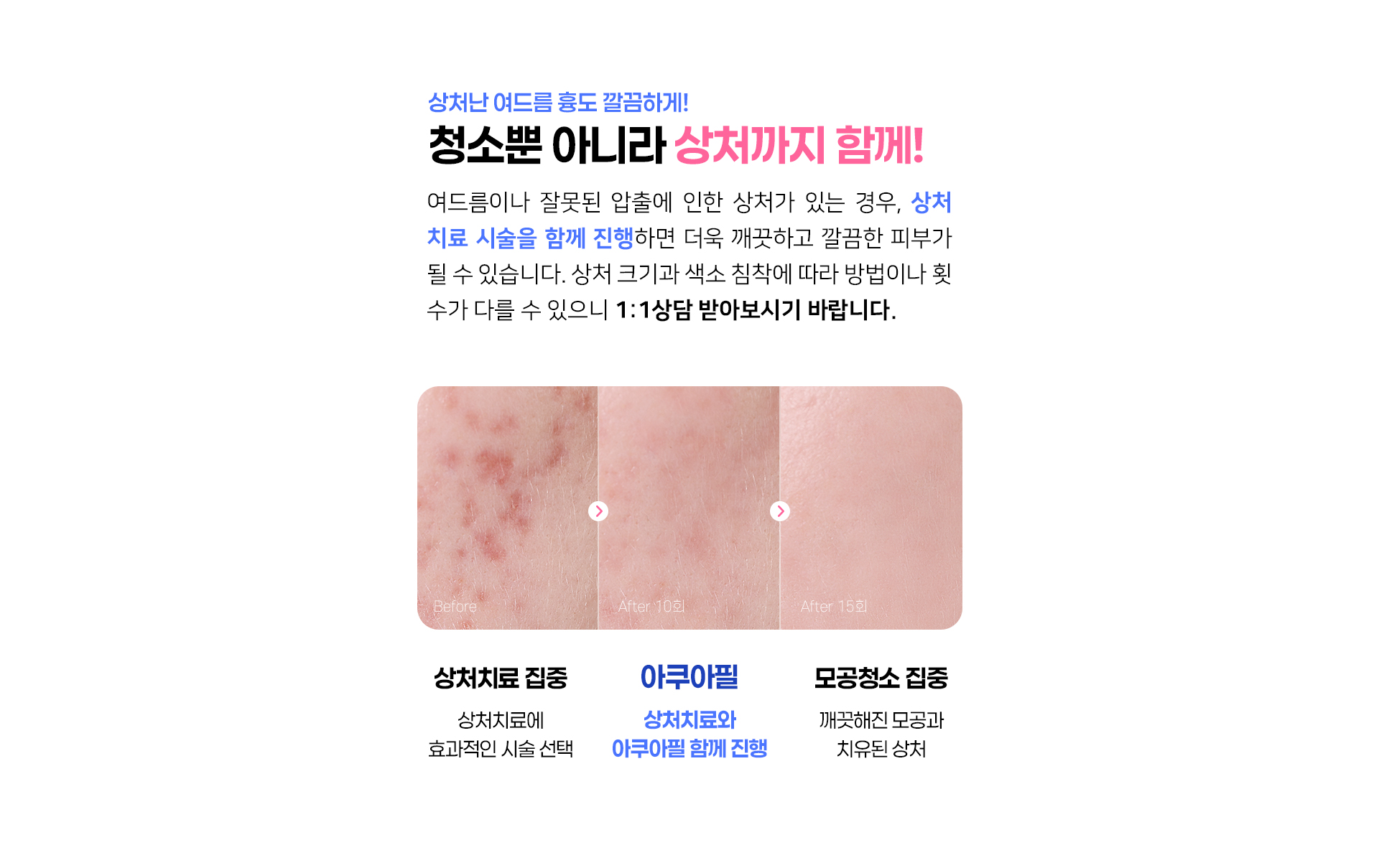 보통 최소 10회부터 시작하는 것을 권유드리며, 어떤 피부이고 어떤 효과를 원하시는지에 따라 시술 방향이 진행되어 횟수는 개인차가 있을 수 있습니다.