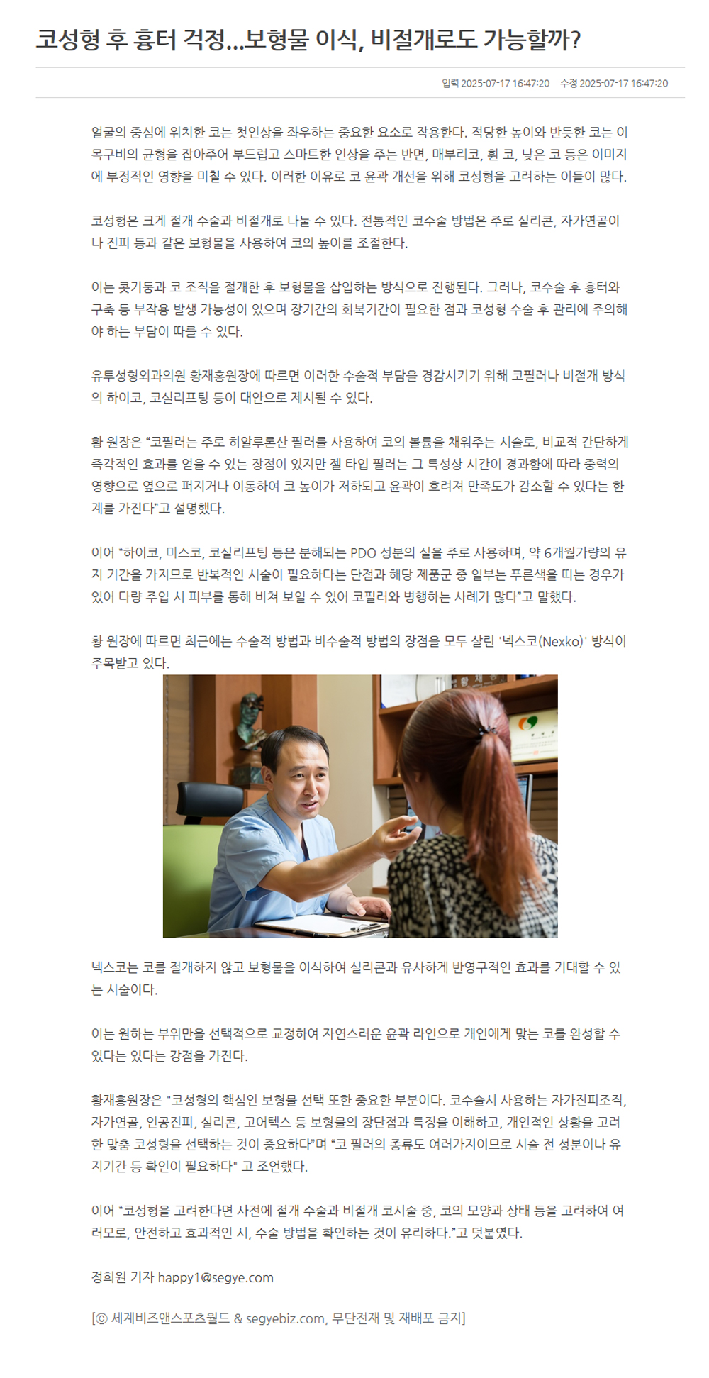 코성형 후 흉터 걱정...보형물 이식, 비절개로도 가능할까?