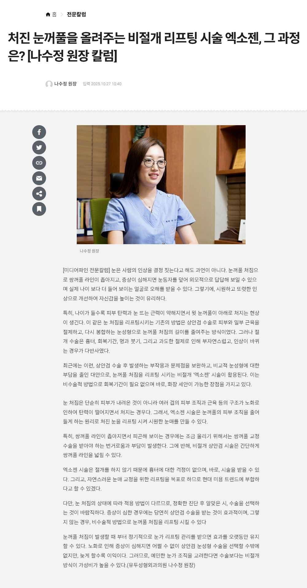처진 눈꺼풀을 올려주는 비절개 리프팅 시술 엑소젠, 그 과정은?