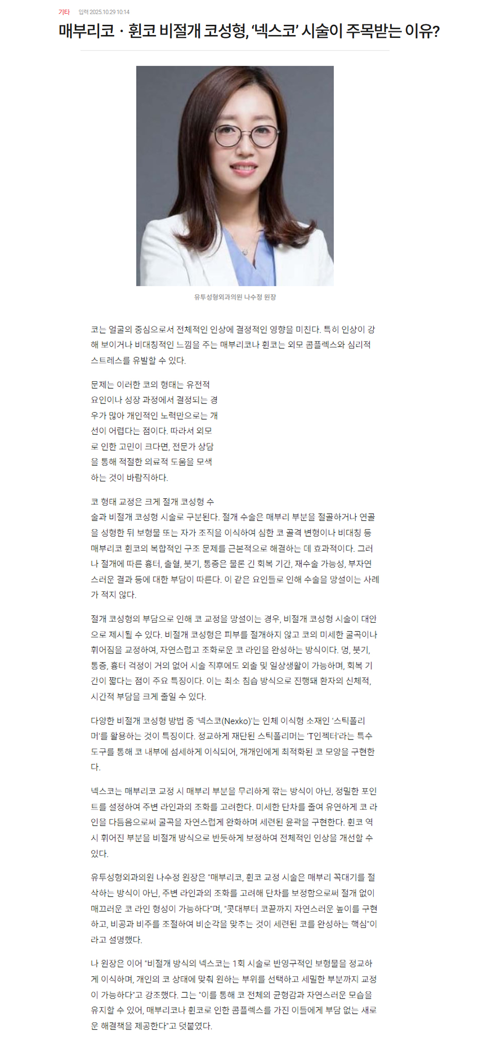 매부리코ㆍ휜코 비절개 코성형, ‘넥스코’ 시술이 주목받는 이유?