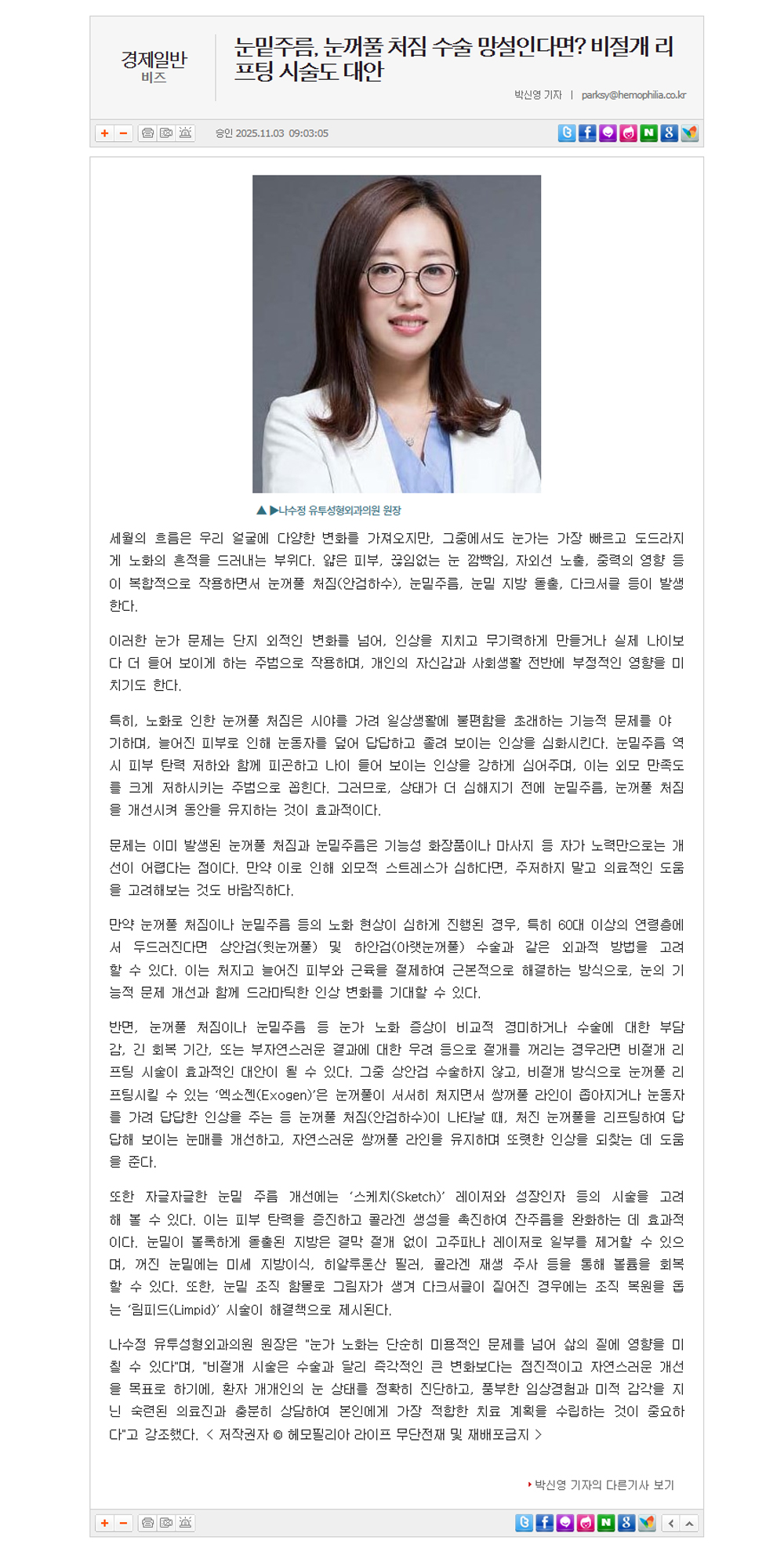 눈밑주름, 눈꺼풀 처짐 수술 망설인다면? 비절개 리프팅 시술도 대안
