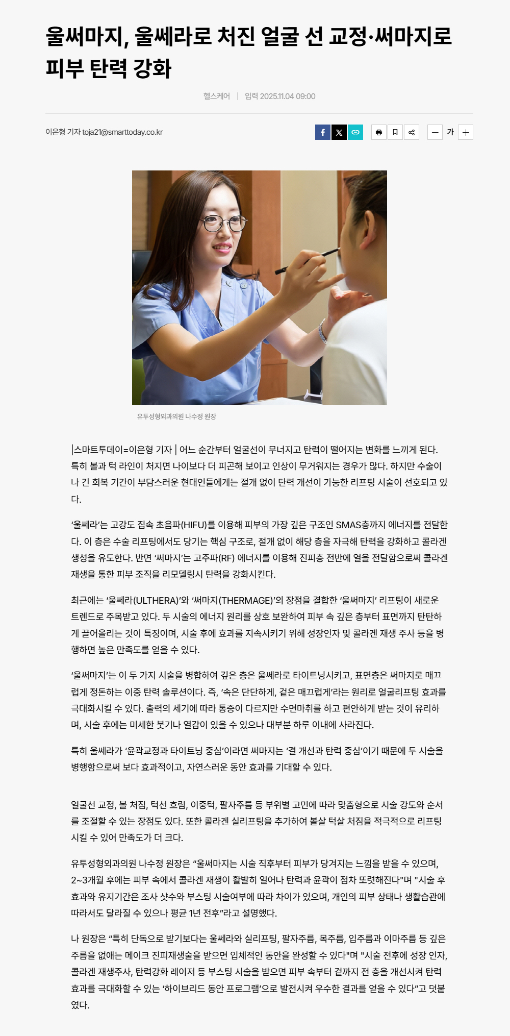 울써마지, 울쎄라로 처진 얼굴 선 교정·써마지로 피부 탄력 강화
