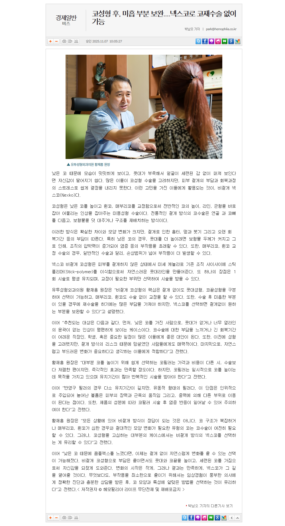 코성형 후, 미흡 부분 보완....넥스코로 코재수술 없이 가능