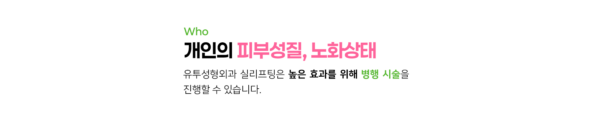 피부 타입은 의료진의 정확한 소견이 필요합니다. 얇거나 두꺼워도 어떤 시술을 병행하느냐에 따라 효과를 극대화 시킬 수 있습니다. 유투성형외과에서 효과와 방안에 대해 객관적이고 정확하게 상담을 받아보세요.